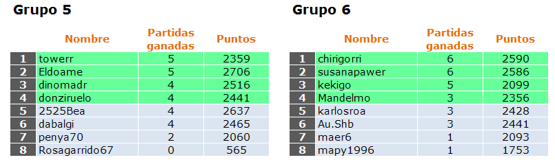 Deja un comentarioEn está página se irán indicando los resultados de las diferentes partidas. Lo único que tienes que hacer es insertar un comentario en la parte inferior de la pantalla (“Deja tu comentario”) indicando el nombre de los dos usuarios y los puntos obtenidos por ambos en la partida. El vencedor de cada partida será el encargado de comunicar el resultado en este apartado.