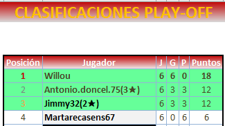 2Inicio PLAY OFF VUELTA: 30 de diciembre a las 00:01