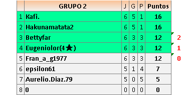 Deja un comentarioEn está página se irán publicando los resultados de las diferentes partidas, siendo ambos jugadores responsables de subirlos o de comprobar que ya hayan sido publicados insertando un COMENTARIO en la parte inferior de la pantalla (opción “Deja tu comentario”), indicando el nombre de los dos jugadores y los puntos obtenidos en la partida.