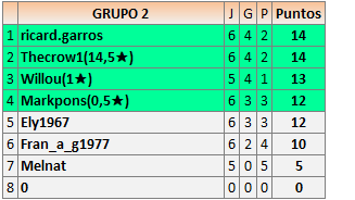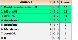 Deja un comentarioEn está página se irán publicando los resultados de las diferentes partidas, siendo ambos jugadores responsables de subirlos o de comprobar que ya hayan sido publicados insertando un COMENTARIO en la parte inferior de la pantalla (opción “Deja tu comentario”), indicando el nombre de los dos jugadores y los puntos obtenidos en la partida.