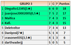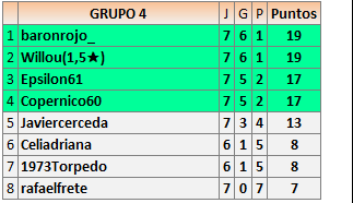 Deja un comentarioEn está página se irán publicando los resultados de las diferentes partidas, siendo ambos jugadores responsables de subirlos o de comprobar que ya hayan sido publicados insertando un COMENTARIO en la parte inferior de la pantalla (opción “Deja tu comentario”), indicando el nombre de los dos jugadores y los puntos obtenidos en la partida.