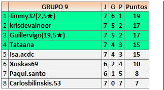 Deja un comentarioEn está página se irán publicando los resultados de las diferentes partidas, siendo ambos jugadores responsables de subirlos o de comprobar que ya hayan sido publicados insertando un COMENTARIO en la parte inferior de la pantalla (opción “Deja tu comentario”), indicando el nombre de los dos jugadores y los puntos obtenidos en la partida.