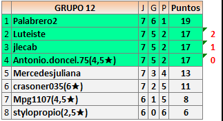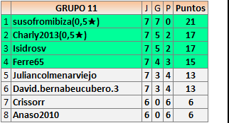 Deja un comentarioEn está página se irán publicando los resultados de las diferentes partidas, siendo ambos jugadores responsables de subirlos o de comprobar que ya hayan sido publicados insertando un COMENTARIO en la parte inferior de la pantalla (opción “Deja tu comentario”), indicando el nombre de los dos jugadores y los puntos obtenidos en la partida.