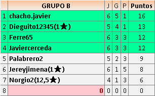 En está página se irán publicando los resultados de las diferentes partidas, siendo ambos jugadores responsables de subirlos o de comprobar que ya hayan sido publicados insertando un COMENTARIO en la parte inferior de la pantalla (opción “Deja tu comentario”), indicando el nombre de los dos jugadores y los puntos obtenidos en la partida.