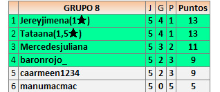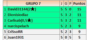 Deja un comentarioEn está página se irán publicando los resultados de las diferentes partidas, siendo ambos jugadores responsables de subirlos o de comprobar que ya hayan sido publicados insertando un COMENTARIO en la parte inferior de la pantalla (opción “Deja tu comentario”), indicando el nombre de los dos jugadores y los puntos obtenidos en la partida.