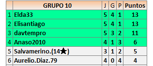 Deja un comentarioEn está página se irán publicando los resultados de las diferentes partidas, siendo ambos jugadores responsables de subirlos o de comprobar que ya hayan sido publicados insertando un COMENTARIO en la parte inferior de la pantalla (opción “Deja tu comentario”), indicando el nombre de los dos jugadores y los puntos obtenidos en la partida.
