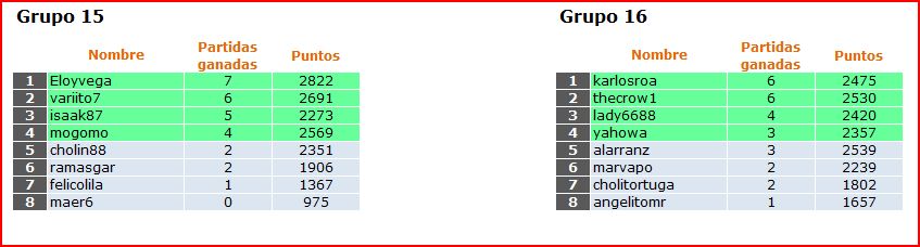 Deja un comentarioEn está página se irán publicando los resultados de las diferentes partidas, siendo el vencedor el encargado de hacerlo, insertando un COMENTARIO en la parte inferior de la pantalla (opción «Deja tu comentario«), indicando el nombre de los dos jugadores y los puntos obtenidos en la partida.
