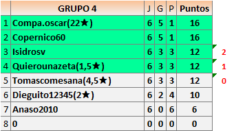 Deja un comentarioEn está página se irán publicando los resultados de las diferentes partidas, siendo ambos jugadores responsables de subirlos o de comprobar que ya hayan sido publicados insertando un COMENTARIO en la parte inferior de la pantalla (opción “Deja tu comentario”), indicando el nombre de los dos jugadores y los puntos obtenidos en la partida.