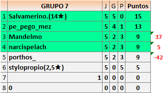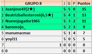 Deja un comentarioEn está página se irán publicando los resultados de las diferentes partidas, siendo ambos jugadores responsables de subirlos o de comprobar que ya hayan sido publicados insertando un COMENTARIO en la parte inferior de la pantalla (opción “Deja tu comentario”), indicando el nombre de los dos jugadores y los puntos obtenidos en la partida.