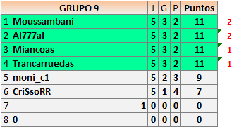 Ostras, en el grupo 9 empatamos 5 a 3 victorias y2 derrotas…😬😬