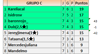 En está página se irán publicando los resultados de las diferentes partidas, siendo ambos jugadores responsables de subirlos o de comprobar que ya hayan sido publicados insertando un COMENTARIO en la parte inferior de la pantalla (opción “Deja tu comentario”), indicando el nombre de los dos jugadores y los puntos obtenidos en la partida.