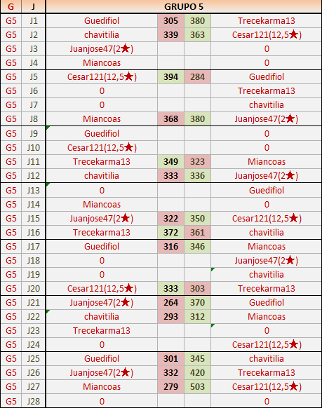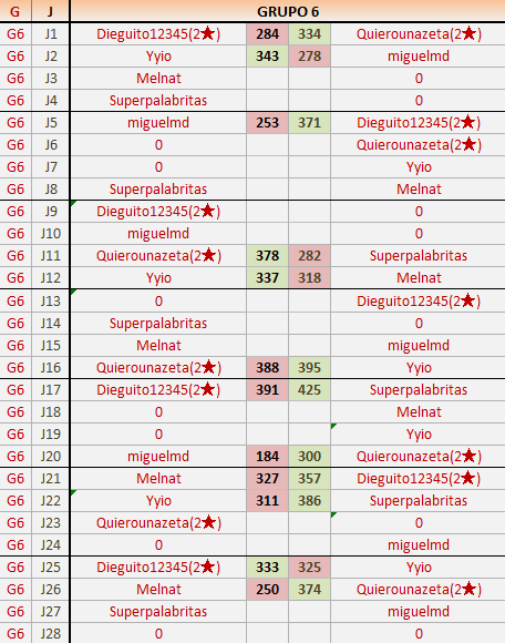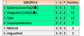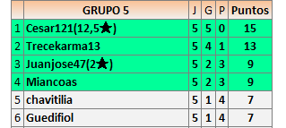 1En está página se irán publicando los resultados de las diferentes partidas, siendo ambos jugadores responsables de subirlos o de comprobar que ya hayan sido publicados insertando un COMENTARIO en la parte inferior de la pantalla (opción “Deja tu comentario”), indicando el nombre de los dos jugadores y los puntos obtenidos en la partida.