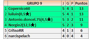 1En está página se irán publicando los resultados de las diferentes partidas, siendo ambos jugadores responsables de subirlos o de comprobar que ya hayan sido publicados insertando un COMENTARIO en la parte inferior de la pantalla (opción “Deja tu comentario”), indicando el nombre de los dos jugadores y los puntos obtenidos en la partida.
