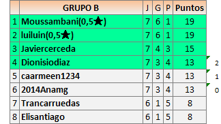 Deja un comentarioEn está página se irán publicando los resultados de las diferentes partidas, siendo ambos jugadores responsables de subirlos o de comprobar que ya hayan sido publicados insertando un COMENTARIO en la parte inferior de la pantalla (opción “Deja tu comentario”), indicando el nombre de los dos jugadores y los puntos obtenidos en la partida.