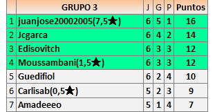Deja un comentarioEn está página se irán publicando los resultados de las diferentes partidas, siendo ambos jugadores responsables de subirlos o de comprobar que ya hayan sido publicados insertando un COMENTARIO en la parte inferior de la pantalla (opción “Deja tu comentario”), indicando el nombre de los dos jugadores y los puntos obtenidos en la partida.