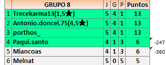 Deja un comentarioEn está página se irán publicando los resultados de las diferentes partidas, siendo ambos jugadores responsables de subirlos o de comprobar que ya hayan sido publicados insertando un COMENTARIO en la parte inferior de la pantalla (opción “Deja tu comentario”), indicando el nombre de los dos jugadores y los puntos obtenidos en la partida.