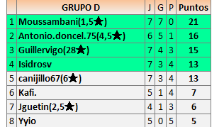 Deja un comentarioEn está página se irán publicando los resultados de las diferentes partidas, siendo ambos jugadores responsables de subirlos o de comprobar que ya hayan sido publicados insertando un COMENTARIO en la parte inferior de la pantalla (opción “Deja tu comentario”), indicando el nombre de los dos jugadores y los puntos obtenidos en la partida.