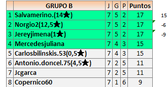 1En está página se irán publicando los resultados de las diferentes partidas, siendo ambos jugadores responsables de subirlos o de comprobar que ya hayan sido publicados insertando un COMENTARIO en la parte inferior de la pantalla (opción “Deja tu comentario”), indicando el nombre de los dos jugadores y los puntos obtenidos en la partida.