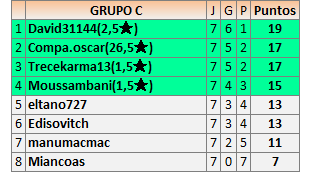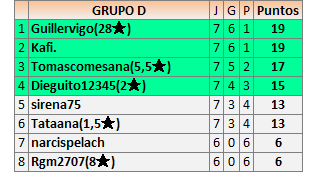Deja un comentarioEn está página se irán publicando los resultados de las diferentes partidas, siendo ambos jugadores responsables de subirlos o de comprobar que ya hayan sido publicados insertando un COMENTARIO en la parte inferior de la pantalla (opción “Deja tu comentario”), indicando el nombre de los dos jugadores y los puntos obtenidos en la partida.