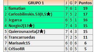 Deja un comentarioEn está página se irán publicando los resultados de las diferentes partidas, siendo ambos jugadores responsables de subirlos o de comprobar que ya hayan sido publicados insertando un COMENTARIO en la parte inferior de la pantalla (opción “Deja tu comentario”), indicando el nombre de los dos jugadores y los puntos obtenidos en la partida.