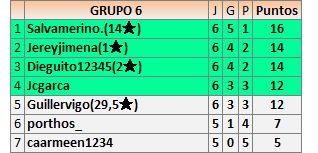 Deja un comentarioEn está página se irán publicando los resultados de las diferentes partidas, siendo ambos jugadores responsables de subirlos o de comprobar que ya hayan sido publicados insertando un COMENTARIO en la parte inferior de la pantalla (opción “Deja tu comentario”), indicando el nombre de los dos jugadores y los puntos obtenidos en la partida.
