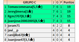 Deja un comentarioEn está página se irán publicando los resultados de las diferentes partidas, siendo ambos jugadores responsables de subirlos o de comprobar que ya hayan sido publicados insertando un COMENTARIO en la parte inferior de la pantalla (opción “Deja tu comentario”), indicando el nombre de los dos jugadores y los puntos obtenidos en la partida.