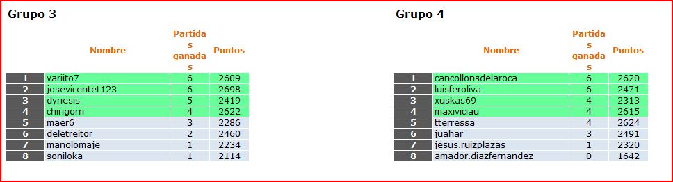 Deja un comentarioEn está página se irán publicando los resultados de las diferentes partidas, siendo el vencedor el encargado de hacerlo, insertando un COMENTARIO en la parte inferior de la pantalla (opción “Deja tu comentario“), indicando el nombre de los dos jugadores y los puntos obtenidos en la partida.