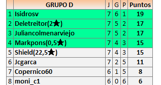 Deja un comentarioEn está página se irán publicando los resultados de las diferentes partidas, siendo ambos jugadores responsables de subirlos o de comprobar que ya hayan sido publicados insertando un COMENTARIO en la parte inferior de la pantalla (opción “Deja tu comentario”), indicando el nombre de los dos jugadores y los puntos obtenidos en la partida.