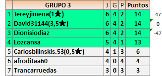 Deja un comentarioEn está página se irán publicando los resultados de las diferentes partidas, siendo ambos jugadores responsables de subirlos o de comprobar que ya hayan sido publicados insertando un COMENTARIO en la parte inferior de la pantalla (opción “Deja tu comentario”), indicando el nombre de los dos jugadores y los puntos obtenidos en la partida.