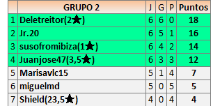 Deja un comentarioEn está página se irán publicando los resultados de las diferentes partidas, siendo ambos jugadores responsables de subirlos o de comprobar que ya hayan sido publicados insertando un COMENTARIO en la parte inferior de la pantalla (opción “Deja tu comentario”), indicando el nombre de los dos jugadores y los puntos obtenidos en la partida.