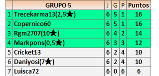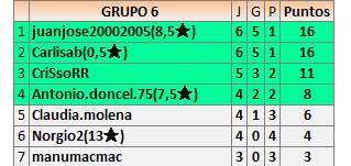 Deja un comentarioEn está página se irán publicando los resultados de las diferentes partidas, siendo ambos jugadores responsables de subirlos o de comprobar que ya hayan sido publicados insertando un COMENTARIO en la parte inferior de la pantalla (opción “Deja tu comentario”), indicando el nombre de los dos jugadores y los puntos obtenidos en la partida.