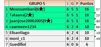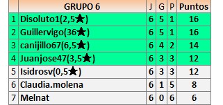 Deja un comentarioEn está página se irán publicando los resultados de las diferentes partidas, siendo ambos jugadores responsables de subirlos o de comprobar que ya hayan sido publicados insertando un COMENTARIO en la parte inferior de la pantalla (opción “Deja tu comentario”), indicando el nombre de los dos jugadores y los puntos obtenidos en la partida.