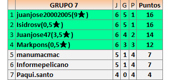 1En está página se irán publicando los resultados de las diferentes partidas, siendo ambos jugadores responsables de subirlos o de comprobar que ya hayan sido publicados insertando un COMENTARIO en la parte inferior de la pantalla (opción “Deja tu comentario”), indicando el nombre de los dos jugadores y los puntos obtenidos en la partida.