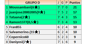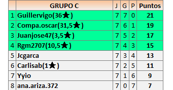 Deja un comentarioEn está página se irán publicando los resultados de las diferentes partidas, siendo ambos jugadores responsables de subirlos o de comprobar que ya hayan sido publicados insertando un COMENTARIO en la parte inferior de la pantalla (opción “Deja tu comentario”), indicando el nombre de los dos jugadores y los puntos obtenidos en la partida.