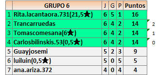 1En está página se irán publicando los resultados de las diferentes partidas, siendo ambos jugadores responsables de subirlos o de comprobar que ya hayan sido publicados insertando un COMENTARIO en la parte inferior de la pantalla (opción “Deja tu comentario”), indicando el nombre de los dos jugadores y los puntos obtenidos en la partida.