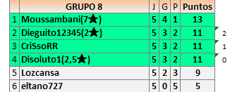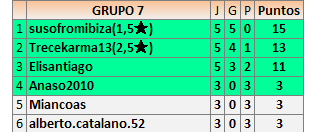 Deja un comentarioEn está página se irán publicando los resultados de las diferentes partidas, siendo ambos jugadores responsables de subirlos o de comprobar que ya hayan sido publicados insertando un COMENTARIO en la parte inferior de la pantalla (opción “Deja tu comentario”), indicando el nombre de los dos jugadores y los puntos obtenidos en la partida.