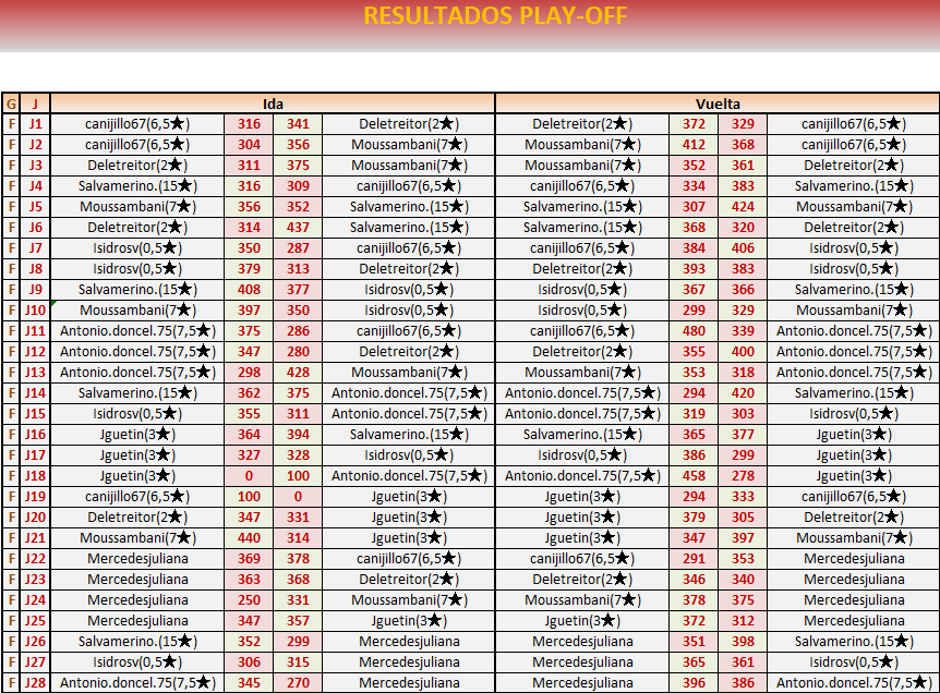 Fin PLAY OFF VUELTA: 19 de enero a las 21:00