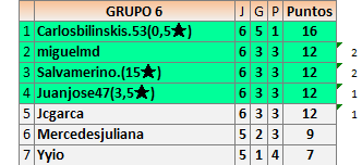 Deja un comentarioEn está página se irán publicando los resultados de las diferentes partidas, siendo ambos jugadores responsables de subirlos o de comprobar que ya hayan sido publicados insertando un COMENTARIO en la parte inferior de la pantalla (opción “Deja tu comentario”), indicando el nombre de los dos jugadores y los puntos obtenidos en la partida.
