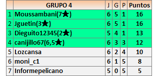 Deja un comentarioEn está página se irán publicando los resultados de las diferentes partidas, siendo ambos jugadores responsables de subirlos o de comprobar que ya hayan sido publicados insertando un COMENTARIO en la parte inferior de la pantalla (opción “Deja tu comentario”), indicando el nombre de los dos jugadores y los puntos obtenidos en la partida.