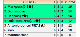 Deja un comentarioEn está página se irán publicando los resultados de las diferentes partidas, siendo ambos jugadores responsables de subirlos o de comprobar que ya hayan sido publicados insertando un COMENTARIO en la parte inferior de la pantalla (opción “Deja tu comentario”), indicando el nombre de los dos jugadores y los puntos obtenidos en la partida.