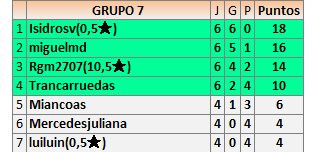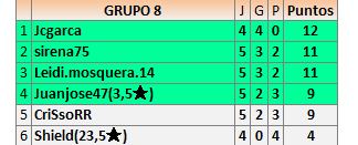 Deja un comentarioEn está página se irán publicando los resultados de las diferentes partidas, siendo ambos jugadores responsables de subirlos o de comprobar que ya hayan sido publicados insertando un COMENTARIO en la parte inferior de la pantalla (opción “Deja tu comentario”), indicando el nombre de los dos jugadores y los puntos obtenidos en la partida.