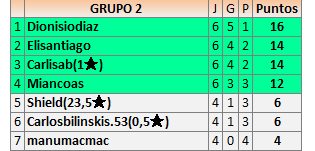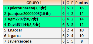 Deja un comentarioEn está página se irán publicando los resultados de las diferentes partidas, siendo ambos jugadores responsables de subirlos o de comprobar que ya hayan sido publicados insertando un COMENTARIO en la parte inferior de la pantalla (opción “Deja tu comentario”), indicando el nombre de los dos jugadores y los puntos obtenidos en la partida.
