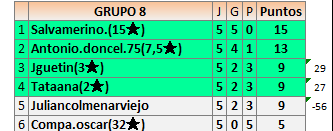 Deja un comentarioEn está página se irán publicando los resultados de las diferentes partidas, siendo ambos jugadores responsables de subirlos o de comprobar que ya hayan sido publicados insertando un COMENTARIO en la parte inferior de la pantalla (opción “Deja tu comentario”), indicando el nombre de los dos jugadores y los puntos obtenidos en la partida.