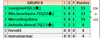 Deja un comentarioEn está página se irán publicando los resultados de las diferentes partidas, siendo ambos jugadores responsables de subirlos o de comprobar que ya hayan sido publicados insertando un COMENTARIO en la parte inferior de la pantalla (opción “Deja tu comentario”), indicando el nombre de los dos jugadores y los puntos obtenidos en la partida.