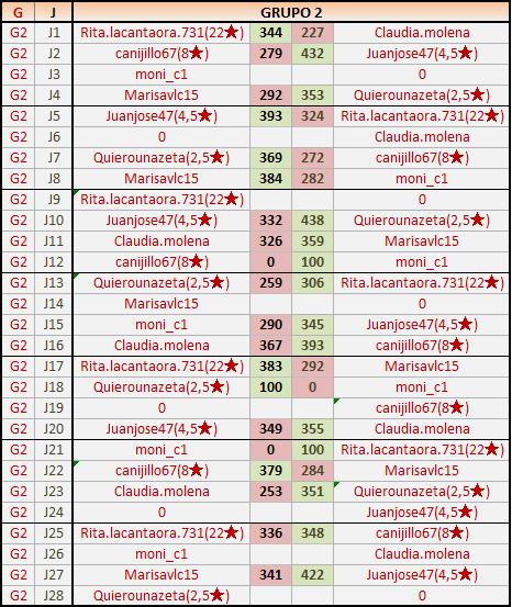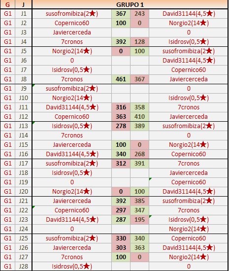 Deja un comentarioEn está página se irán publicando los resultados de las diferentes partidas, siendo ambos jugadores responsables de subirlos o de comprobar que ya hayan sido publicados insertando un COMENTARIO en la parte inferior de la pantalla (opción “Deja tu comentario”), indicando el nombre de los dos jugadores y los puntos obtenidos en la partida.