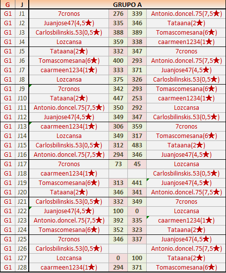 Si no leí mal y Juanjose47 indicó que en su partida con Lozcansa el resultado había sido a favor de Juanjose47 100-0, se clasificarian Juanjose47 y Tomascomesana.
