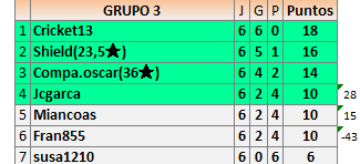 Deja un comentarioEn está página se irán publicando los resultados de las diferentes partidas, siendo ambos jugadores responsables de subirlos o de comprobar que ya hayan sido publicados insertando un COMENTARIO en la parte inferior de la pantalla (opción “Deja tu comentario”), indicando el nombre de los dos jugadores y los puntos obtenidos en la partida.