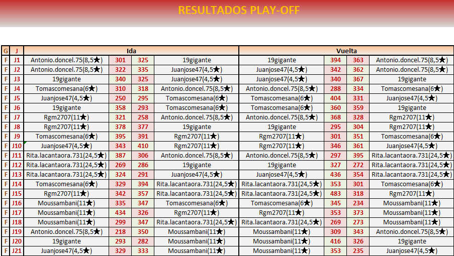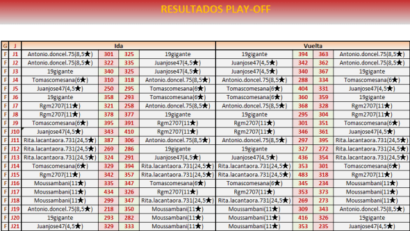 Fin PLAY OFF VUELTA: 22 de noviembre a las 21:00