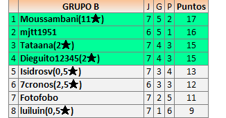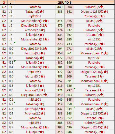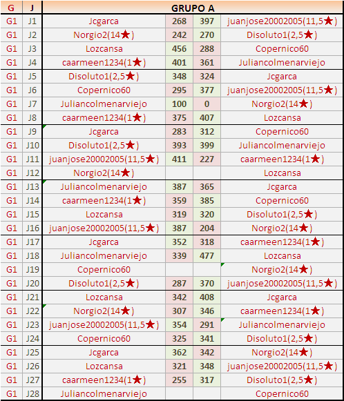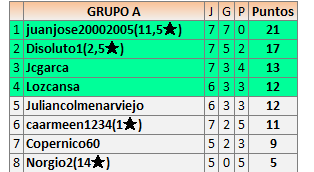1En está página se irán publicando los resultados de las diferentes partidas, siendo ambos jugadores responsables de subirlos o de comprobar que ya hayan sido publicados insertando un COMENTARIO en la parte inferior de la pantalla (opción “Deja tu comentario”), indicando el nombre de los dos jugadores y los puntos obtenidos en la partida.