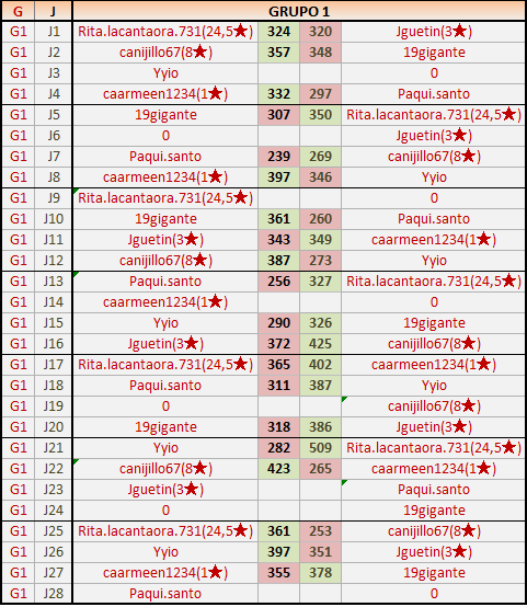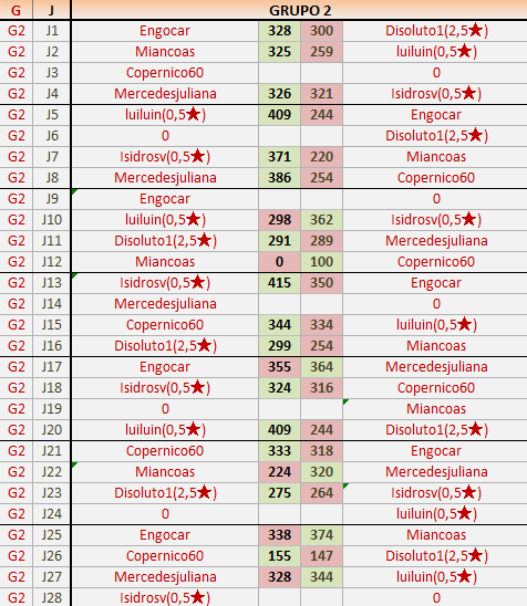 Deja un comentarioEn está página se irán publicando los resultados de las diferentes partidas, siendo ambos jugadores responsables de subirlos o de comprobar que ya hayan sido publicados insertando un COMENTARIO en la parte inferior de la pantalla (opción “Deja tu comentario”), indicando el nombre de los dos jugadores y los puntos obtenidos en la partida.